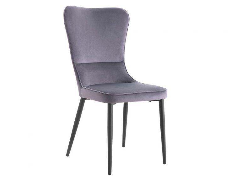 Gorgeous Extending Oak Effect Formica Table with Grey Painted Central Extending Leaf. This set comes complete with 6 super comfy grey velvet chairs.