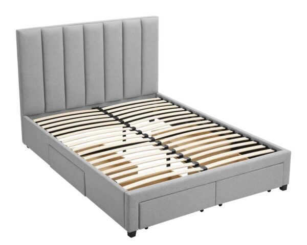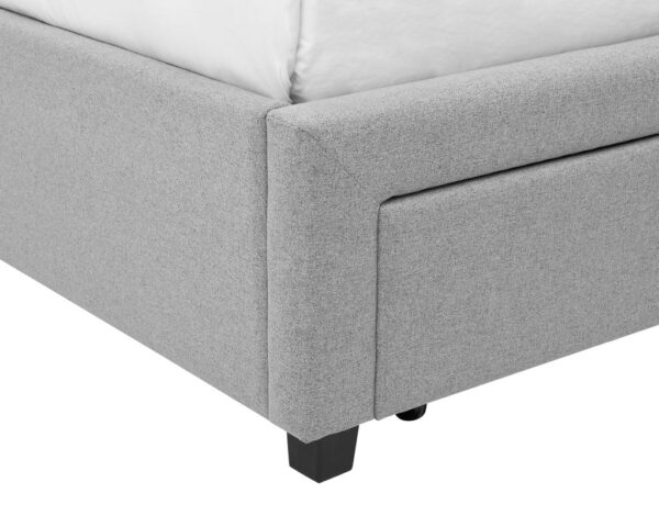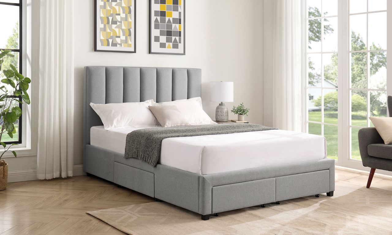 The Hailey Storage Bed offers a soft, contemporary feel with its beautifully upholstered soft grey deep panelled headboard, offering a real feature to your bedroom. This bed not only looks great, but offers practicality with four spacious drawers concealed within the bedframe for those needing the extra storage space.