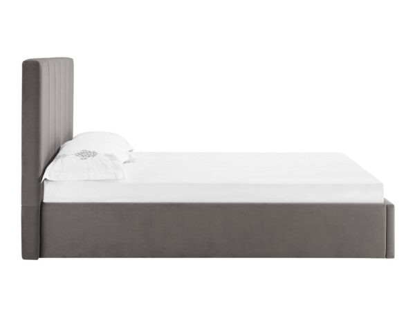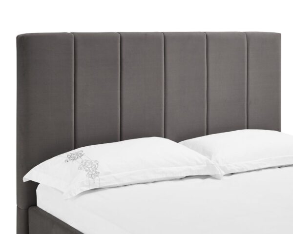 Sturdy and made of high quality materials the Lara Bed is the ideal choice for any modern home. Simple clean lines feature on this velvet headboard to give the ultimate stylish finish. Perfect for any bedroom!
