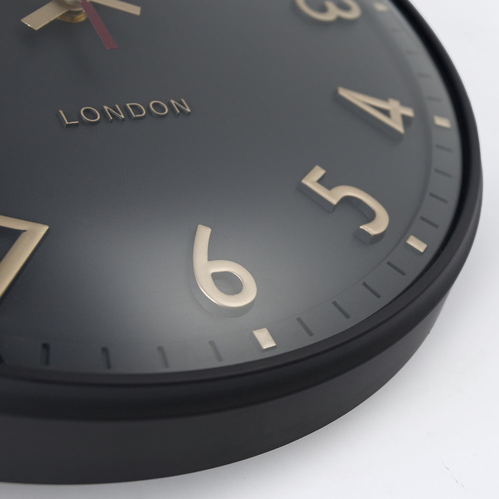 A classic design that harnesses simplicity and transforms this clock into a contemporary accessory that will uplift an interior with its colourful personality. Across the rich charcoal clock base, raised gold matt numerals sit proudly behind a subtle glass dome. An energetic second-hand splashed with a bright contrasting burgundy injects a little attitude into this classic wall clock.